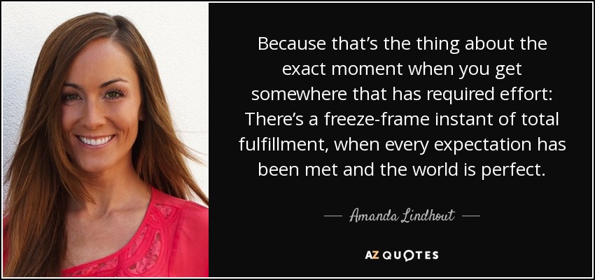 Because that’s the thing about the exact moment when you get somewhere that has required effort: There’s a freeze-frame instant of total fulfillment, when every expectation has been met and the world is perfect.