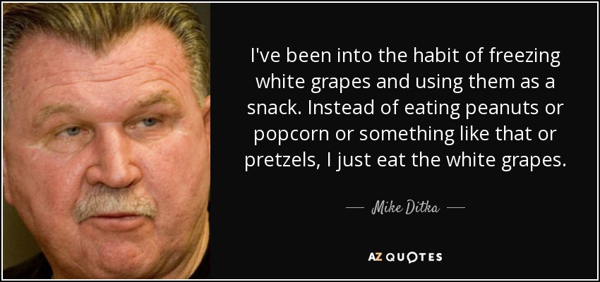 I've been into the habit of freezing white grapes and using them as a snack. Instead of eating peanuts or popcorn or something like that or pretzels, I just eat the white grapes.