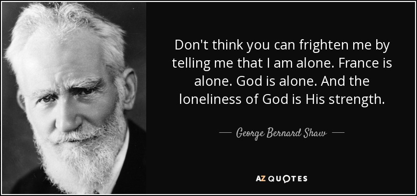 Don't think you can frighten me by telling me that I am alone. France is alone. God is alone. And the loneliness of God is His strength.