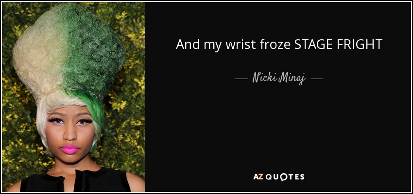 As for the stage fright, it never goes away. When I'm waiting in the wings to go on, it's agony every single time but I stay focused and I know that once I'm on stage it'll be fine; I'll be in my happy little bubble.