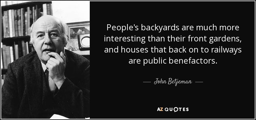 People's backyards are much more interesting than their front gardens, and houses that back on to railways are public benefactors.