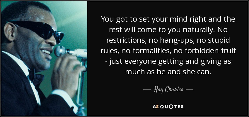 You got to set your mind right and the rest will come to you naturally. No restrictions, no hang-ups, no stupid rules, no formalities, no forbidden fruit - just everyone getting and giving as much as he and she can.
