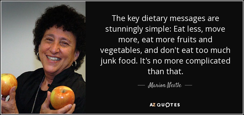 The key dietary messages are stunningly simple: Eat less, move more, eat more fruits and vegetables, and don't eat too much junk food. It's no more complicated than that.