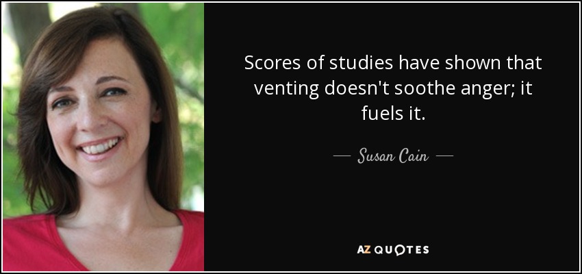 Scores of studies have shown that venting doesn't soothe anger; it fuels it.