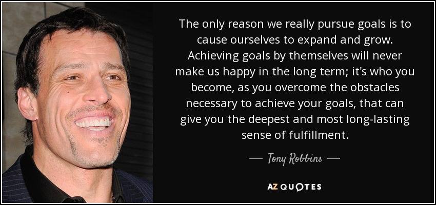 The only reason we really pursue goals is to cause ourselves to expand and grow. Achieving goals by themselves will never make us happy in the long term; it's who you become, as you overcome the obstacles necessary to achieve your goals, that can give you the deepest and most long-lasting sense of fulfillment.