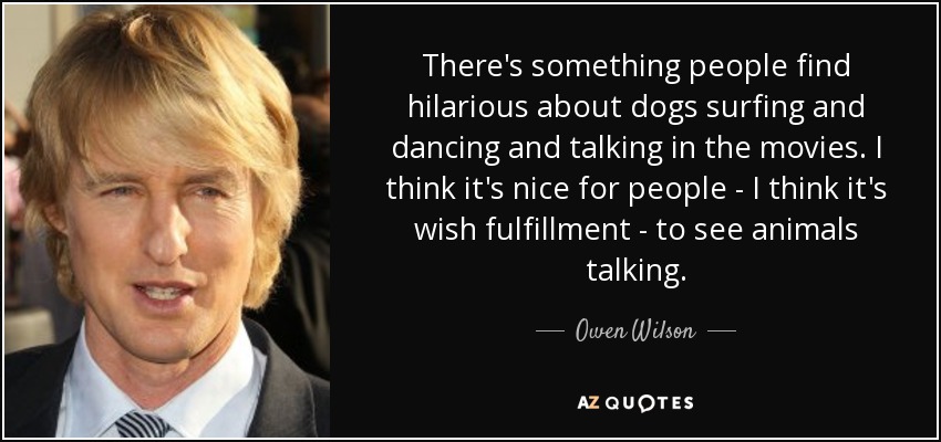 There's something people find hilarious about dogs surfing and dancing and talking in the movies. I think it's nice for people - I think it's wish fulfillment - to see animals talking.