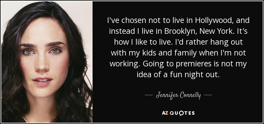 I've chosen not to live in Hollywood, and instead I live in Brooklyn, New York. It's how I like to live. I'd rather hang out with my kids and family when I'm not working. Going to premieres is not my idea of a fun night out.