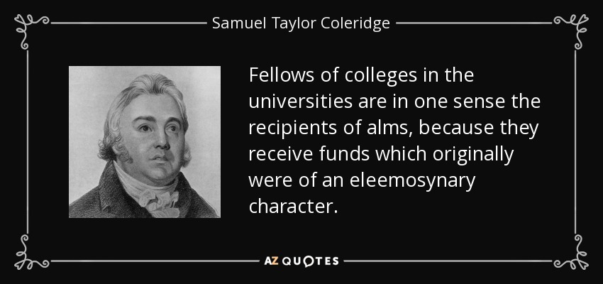 Fellows of colleges in the universities are in one sense the recipients of alms, because they receive funds which originally were of an eleemosynary character.