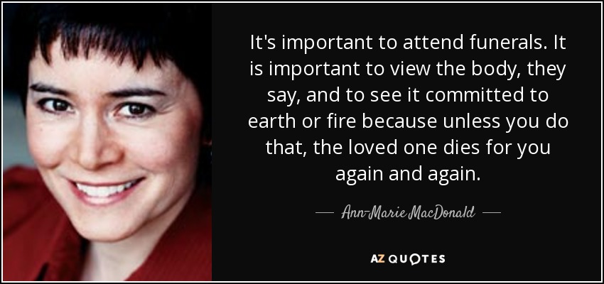 It's important to attend funerals. It is important to view the body, they say, and to see it committed to earth or fire because unless you do that, the loved one dies for you again and again.