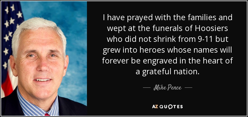 I have prayed with the families and wept at the funerals of Hoosiers who did not shrink from 9-11 but grew into heroes whose names will forever be engraved in the heart of a grateful nation.