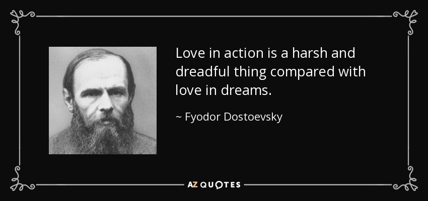 As Dostoevski said: 'Love in action is a harsh and dreadful thing compared with love in dreams.