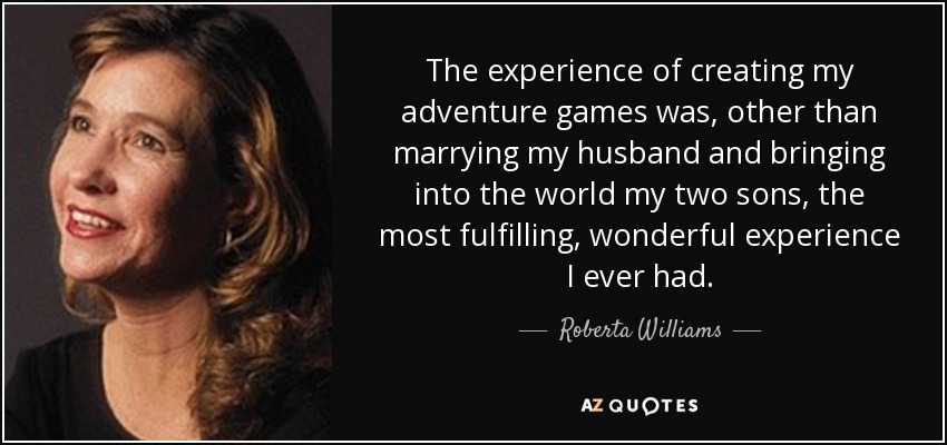 The experience of creating my adventure games was, other than marrying my husband and bringing into the world my two sons, the most fulfilling, wonderful experience I ever had.
