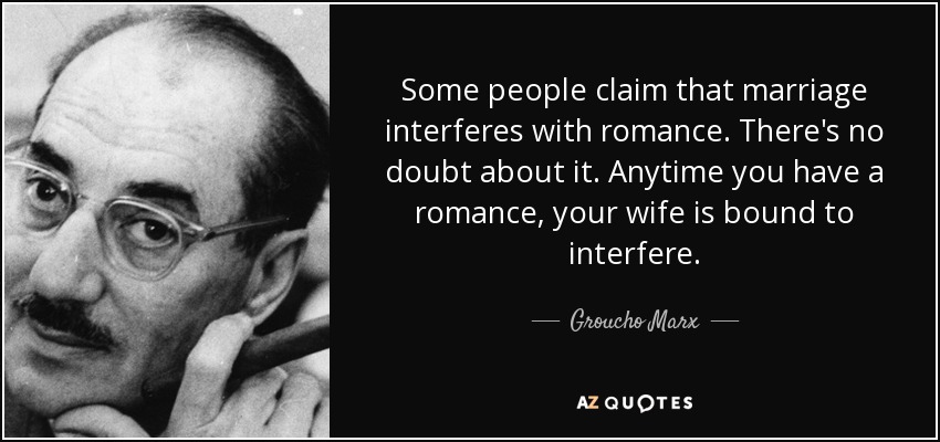 Some people claim that marriage interferes with romance. There's no doubt about it. Anytime you have a romance, your wife is bound to interfere.