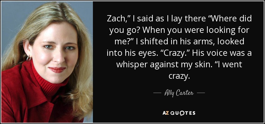 Zach,” I said as I lay there “Where did you go? When you were looking for me?” I shifted in his arms, looked into his eyes. “Crazy.” His voice was a whisper against my skin. “I went crazy.