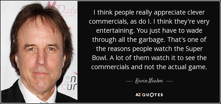 I think people really appreciate clever commercials, as do I. I think they're very entertaining. You just have to wade through all the garbage. That's one of the reasons people watch the Super Bowl. A lot of them watch it to see the commercials and not the actual game.