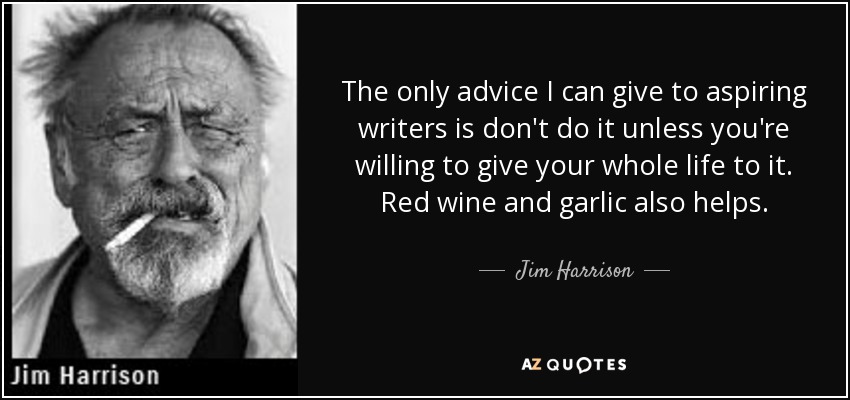 The only advice I can give to aspiring writers is don't do it unless you're willing to give your whole life to it. Red wine and garlic also helps.