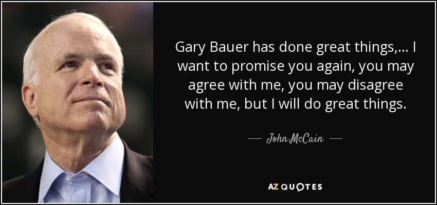 Gary Bauer has done great things, ... I want to promise you again, you may agree with me, you may disagree with me, but I will do great things.