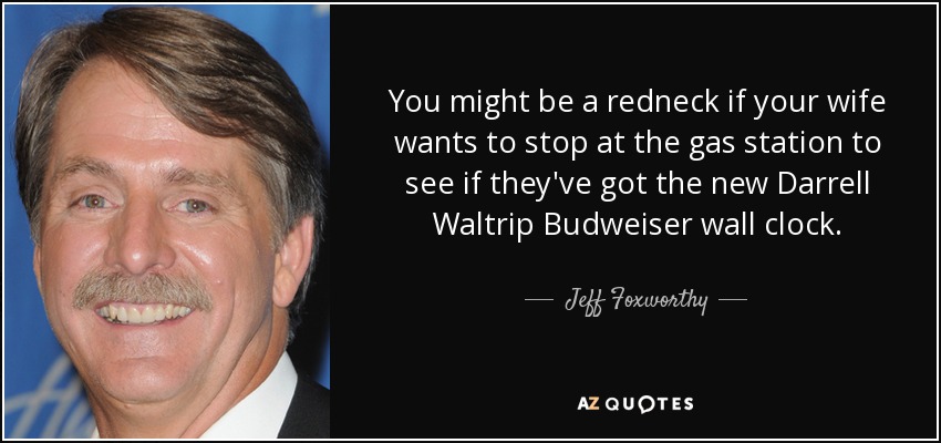 You might be a redneck if your wife wants to stop at the gas station to see if they've got the new Darrell Waltrip Budweiser wall clock.