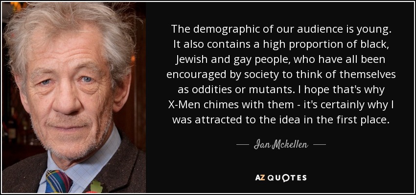 The demographic of our audience is young. It also contains a high proportion of black, Jewish and gay people, who have all been encouraged by society to think of themselves as oddities or mutants. I hope that's why X-Men chimes with them - it's certainly why I was attracted to the idea in the first place.