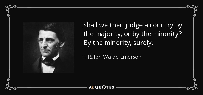 Shall we then judge a country by the majority, or by the minority? By the minority, surely.