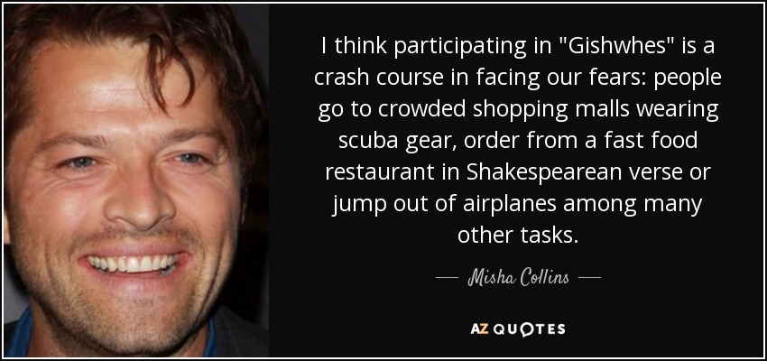 I think participating in "Gishwhes" is a crash course in facing our fears: people go to crowded shopping malls wearing scuba gear, order from a fast food restaurant in Shakespearean verse or jump out of airplanes among many other tasks.