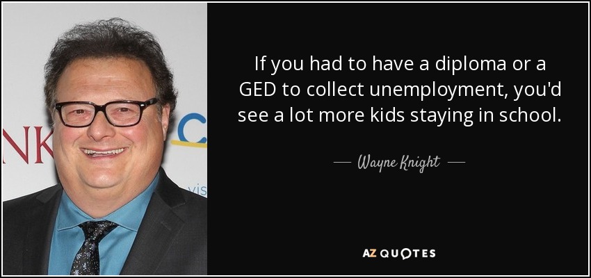 If you had to have a diploma or a GED to collect unemployment, you'd see a lot more kids staying in school.