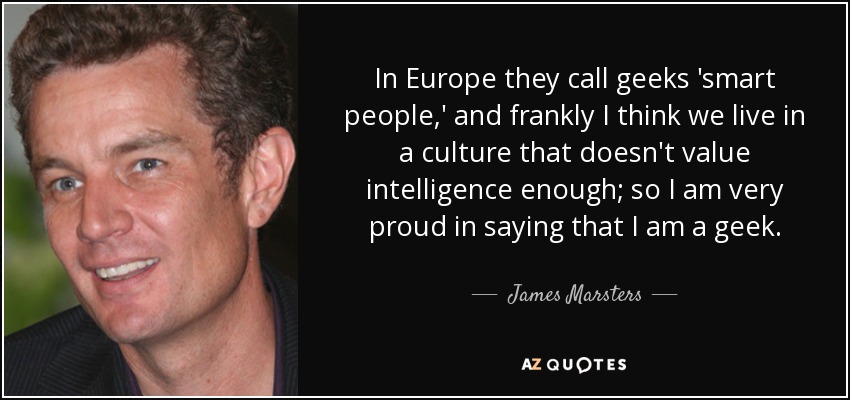 In Europe they call geeks 'smart people,' and frankly I think we live in a culture that doesn't value intelligence enough; so I am very proud in saying that I am a geek.