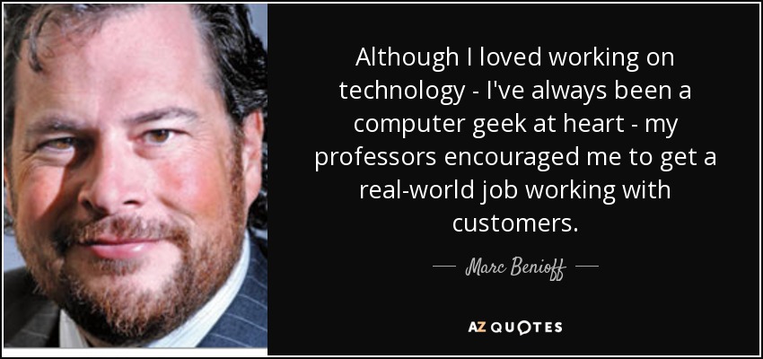 Although I loved working on technology - I've always been a computer geek at heart - my professors encouraged me to get a real-world job working with customers.