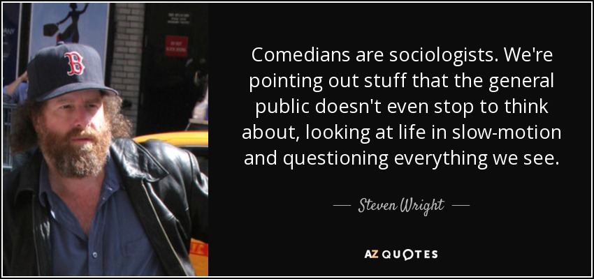 Comedians are sociologists. We're pointing out stuff that the general public doesn't even stop to think about, looking at life in slow-motion and questioning everything we see.