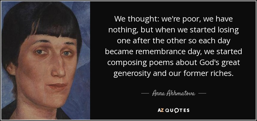 We thought: we're poor, we have nothing, but when we started losing one after the other so each day became remembrance day, we started composing poems about God's great generosity and our former riches.
