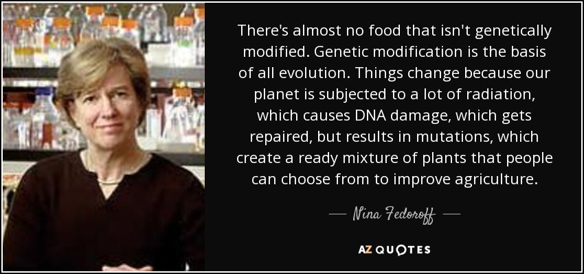 There's almost no food that isn't genetically modified. Genetic modification is the basis of all evolution. Things change because our planet is subjected to a lot of radiation, which causes DNA damage, which gets repaired, but results in mutations, which create a ready mixture of plants that people can choose from to improve agriculture.