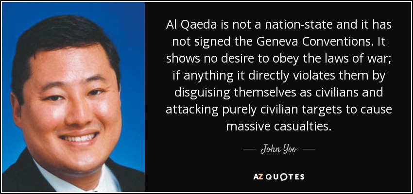 Al Qaeda is not a nation-state and it has not signed the Geneva Conventions. It shows no desire to obey the laws of war; if anything it directly violates them by disguising themselves as civilians and attacking purely civilian targets to cause massive casualties.