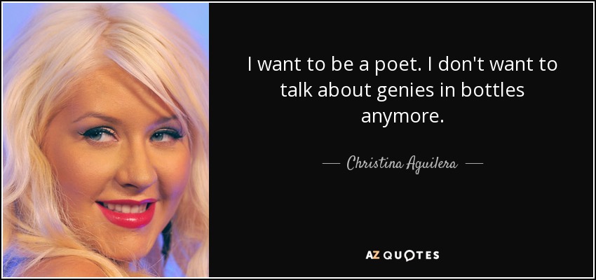 I want to be a poet. I don't want to talk about genies in bottles anymore.