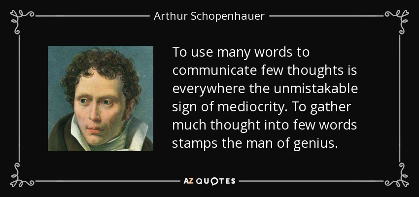 To use many words to communicate few thoughts is everywhere the unmistakable sign of mediocrity. To gather much thought into few words stamps the man of genius.