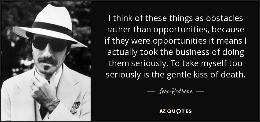 I think of these things as obstacles rather than opportunities, because if they were opportunities it means I actually took the business of doing them seriously. To take myself too seriously is the gentle kiss of death.