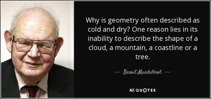 Why is geometry often described as cold and dry? One reason lies in its inability to describe the shape of a cloud, a mountain, a coastline or a tree.