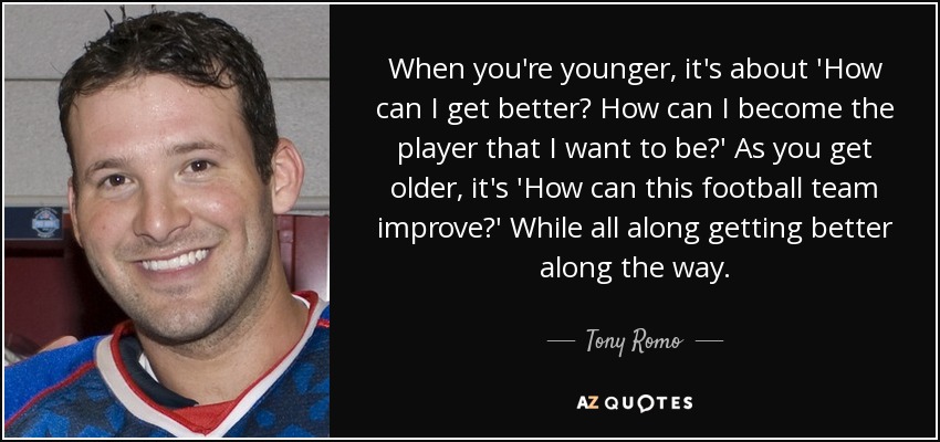 When you're younger, it's about 'How can I get better? How can I become the player that I want to be?' As you get older, it's 'How can this football team improve?' While all along getting better along the way.