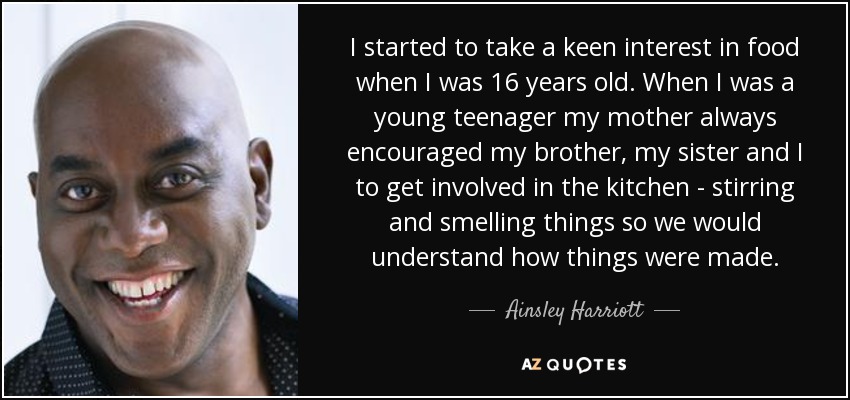 I started to take a keen interest in food when I was 16 years old. When I was a young teenager my mother always encouraged my brother, my sister and I to get involved in the kitchen - stirring and smelling things so we would understand how things were made.