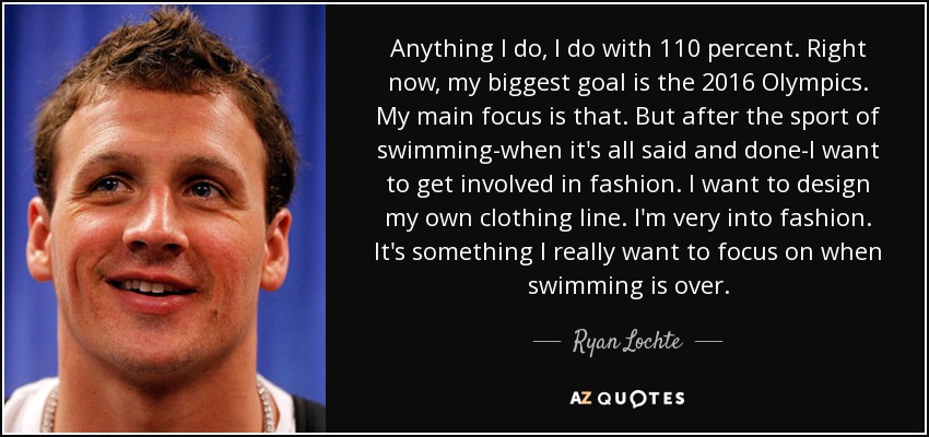Anything I do, I do with 110 percent. Right now, my biggest goal is the 2016 Olympics. My main focus is that. But after the sport of swimming-when it's all said and done-I want to get involved in fashion. I want to design my own clothing line. I'm very into fashion. It's something I really want to focus on when swimming is over.