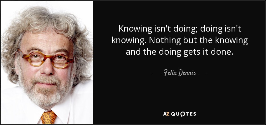 Knowing isn't doing; doing isn't knowing. Nothing but the knowing and the doing gets it done.