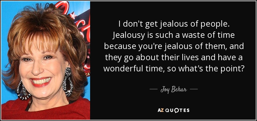 I don't get jealous of people. Jealousy is such a waste of time because you're jealous of them, and they go about their lives and have a wonderful time, so what's the point?