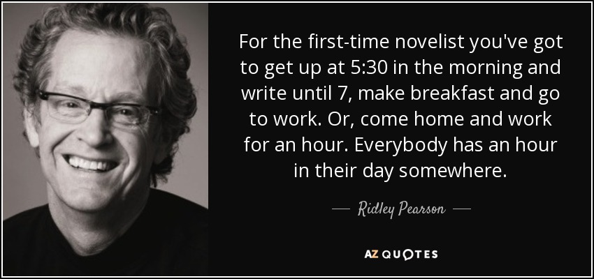 For the first-time novelist you've got to get up at 5:30 in the morning and write until 7, make breakfast and go to work. Or, come home and work for an hour. Everybody has an hour in their day somewhere.