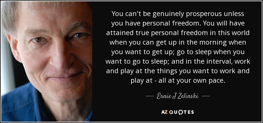 You can't be genuinely prosperous unless you have personal freedom. You will have attained true personal freedom in this world when you can get up in the morning when you want to get up; go to sleep when you want to go to sleep; and in the interval, work and play at the things you want to work and play at - all at your own pace.