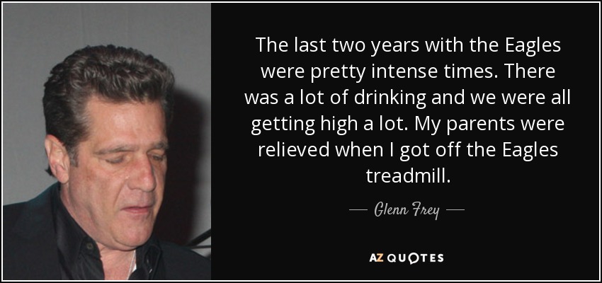 The last two years with the Eagles were pretty intense times. There was a lot of drinking and we were all getting high a lot. My parents were relieved when I got off the Eagles treadmill.