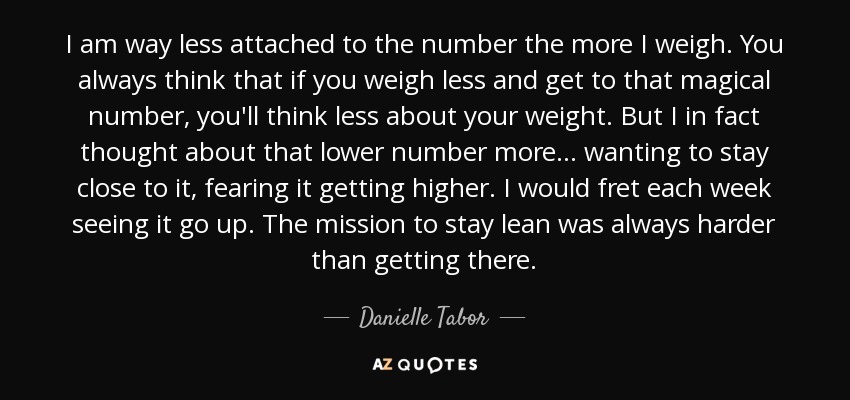I am way less attached to the number the more I weigh. You always think that if you weigh less and get to that magical number, you'll think less about your weight. But I in fact thought about that lower number more... wanting to stay close to it, fearing it getting higher. I would fret each week seeing it go up. The mission to stay lean was always harder than getting there.