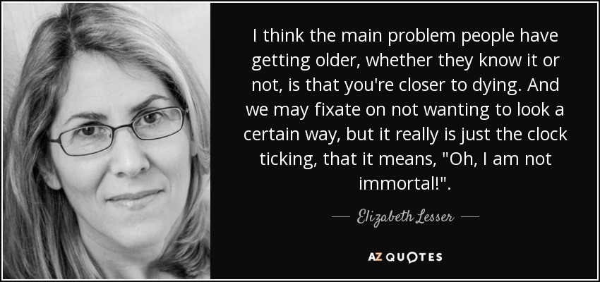 I think the main problem people have getting older, whether they know it or not, is that you're closer to dying. And we may fixate on not wanting to look a certain way, but it really is just the clock ticking, that it means, "Oh, I am not immortal!".