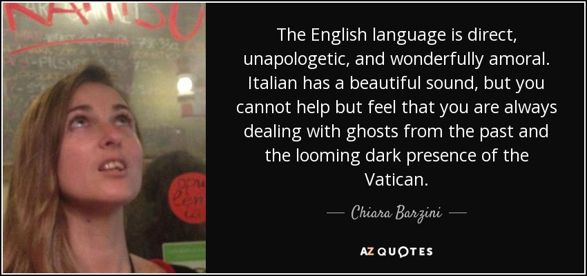 The English language is direct, unapologetic, and wonderfully amoral. Italian has a beautiful sound, but you cannot help but feel that you are always dealing with ghosts from the past and the looming dark presence of the Vatican.