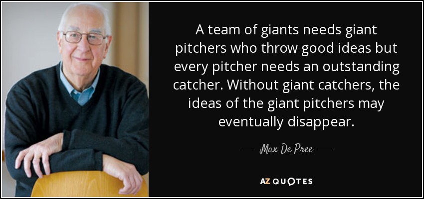 A team of giants needs giant pitchers who throw good ideas but every pitcher needs an outstanding catcher. Without giant catchers, the ideas of the giant pitchers may eventually disappear.