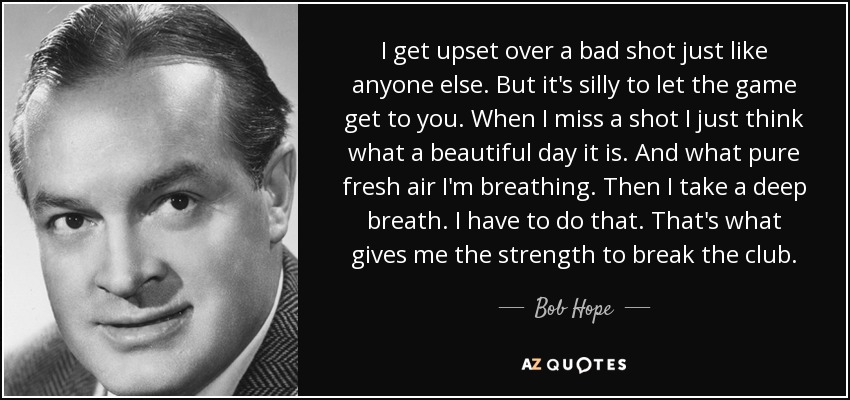 I get upset over a bad shot just like anyone else. But it's silly to let the game get to you. When I miss a shot I just think what a beautiful day it is. And what pure fresh air I'm breathing. Then I take a deep breath. I have to do that. That's what gives me the strength to break the club.