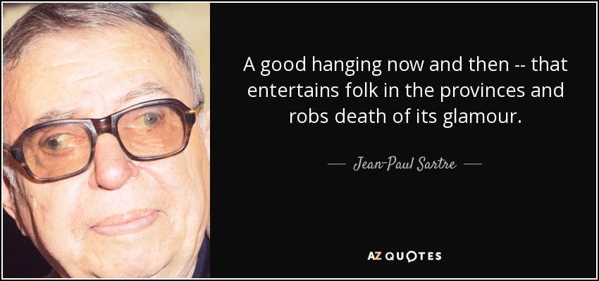 A good hanging now and then -- that entertains folk in the provinces and robs death of its glamour.